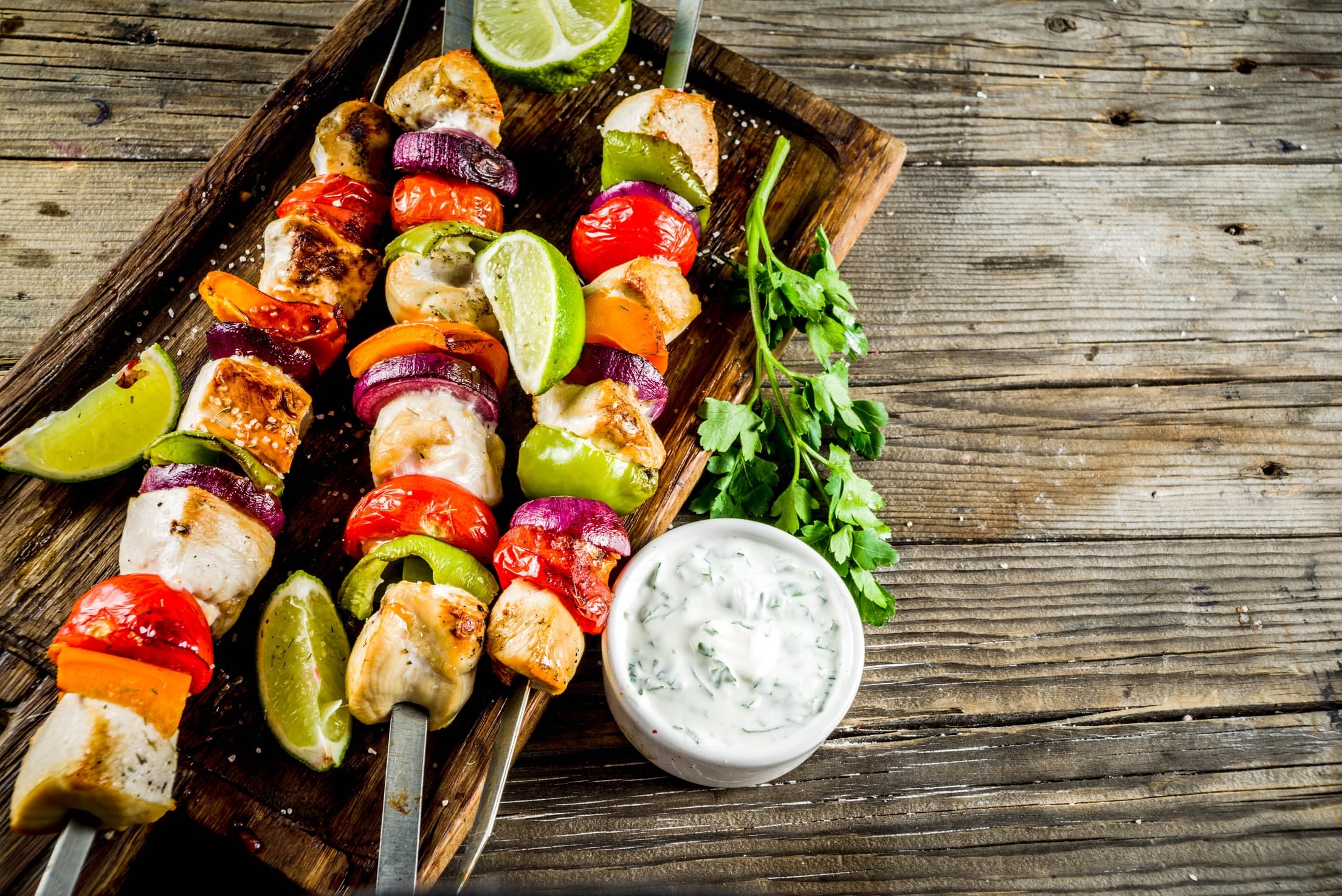 Hähnchenspieße mit Paprika und Zwiebel