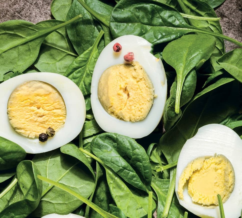 Dinkelflocken mit Hafermilch mischen und kurz ziehen lassen. Eier weich kochen, schälen und zusammen mit dem Babyspinat in eine Schüssel geben. Alles anrichten und direkt genießen.